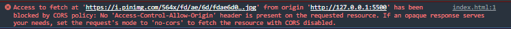 https://i.pinimg.com/564x/fd/ae/6d/fdae6d0....jpg 'http://127.0.0.1:5500' 출처로 가져올 수 있는 액세스가 CORS 정책에 의해 차단되었습니다. 요청된 리소스에 'Access-Control-Allow-Origin' 헤더가 없습니다. 불투명한 응답이 필요에 적합한 경우, 요청 모드를 'no-cors'로 설정하여 CORS가 비활성화된 리소스를 가져오십시오.